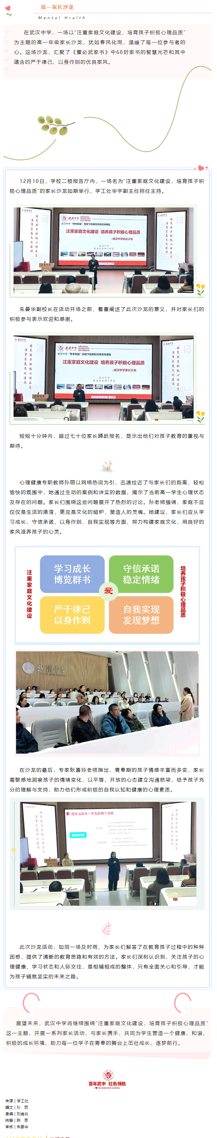 注重家庭文化建设 培养孩子积极心理品质——高一年级家长沙龙成功举行