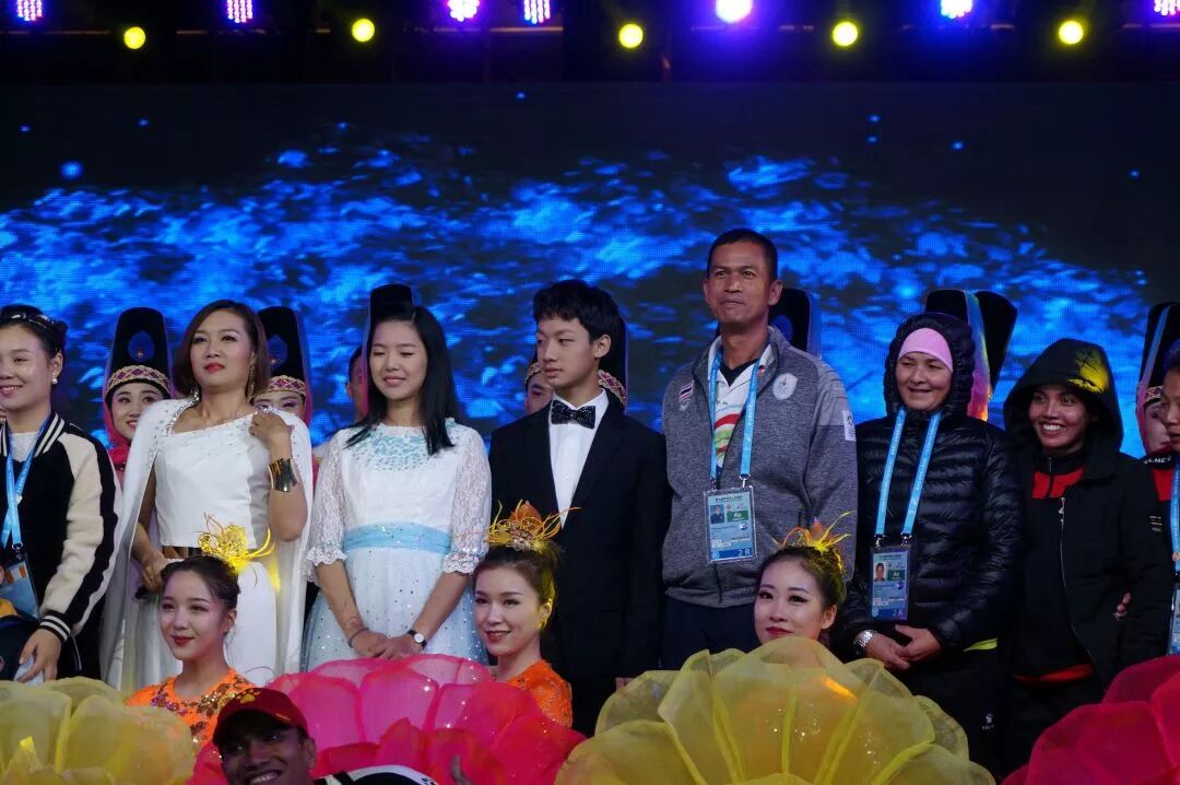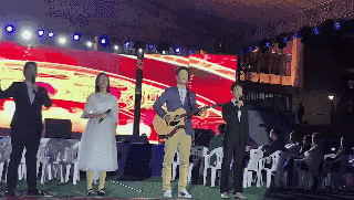 现场的军人们齐声合唱,既兴奋又带着浓浓的离愁别绪!演出结束后,军人运动员们纷纷走上舞台和表演者们合影,还高高竖起了大拇指!