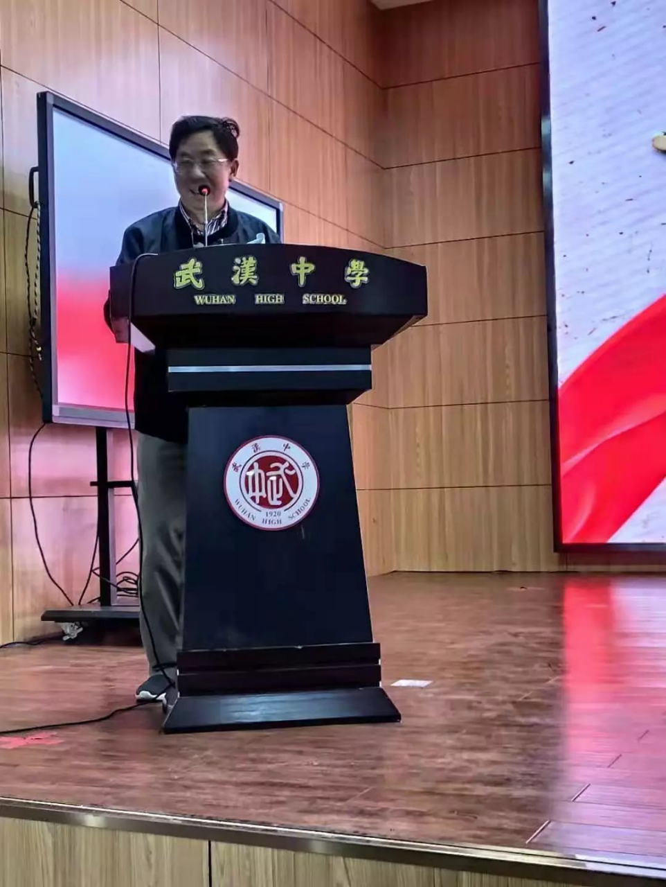 最后,曹双华书记代表武汉中学讲话。表达了坚决支持武汉中学校友会成立的态度。充分肯定了校友会的前期的工作和进展。并代表武汉中学热情欢迎各届校友返校参加武汉中学百年庆典活动。