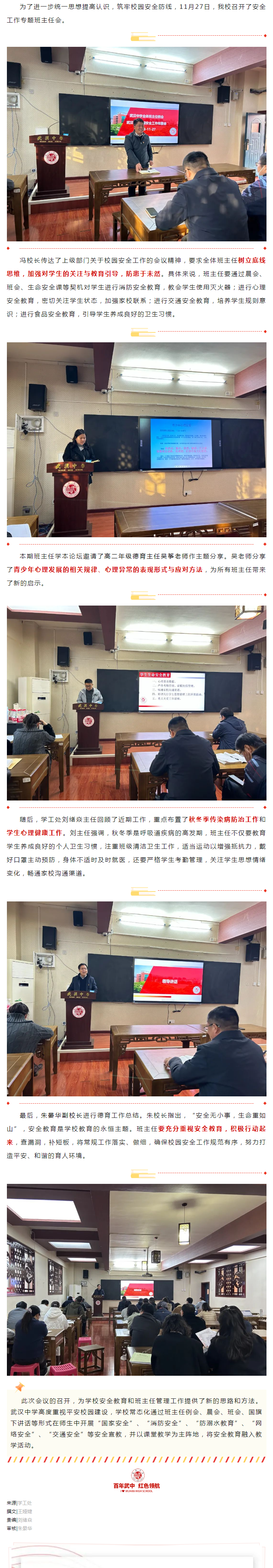 守护校园安全,夯实常规管理——武汉中学召开11月班主任工作例会