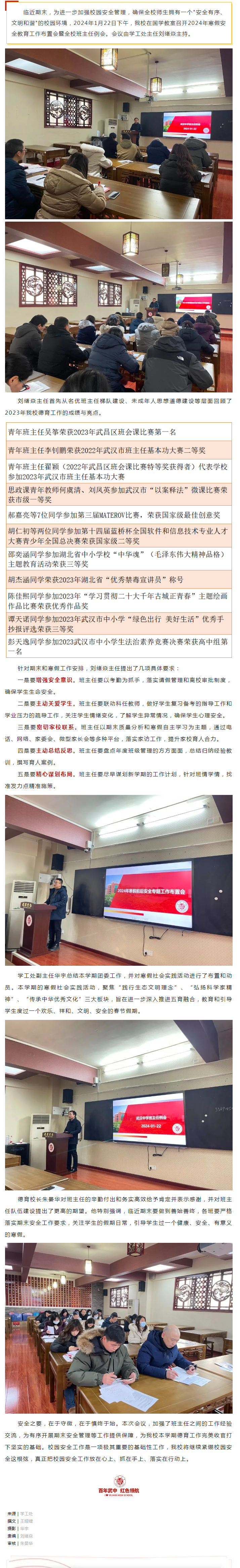 守护安全,善始善终——武汉中学召开2024年寒假安全教育工作布置会暨班主任例会