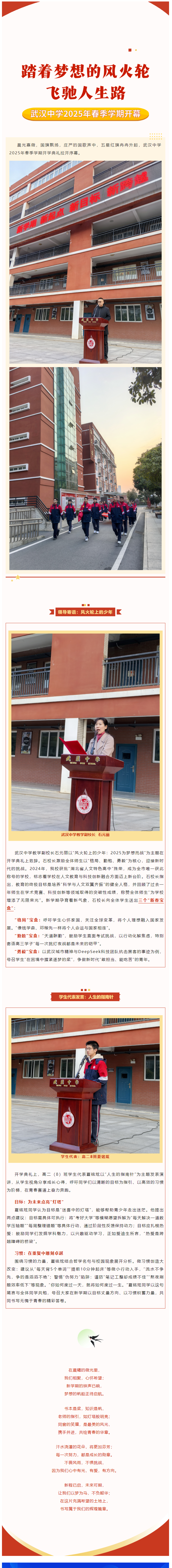 踏着梦想的风火轮,飞驰人生路——武汉中学2025年春季学期开幕
