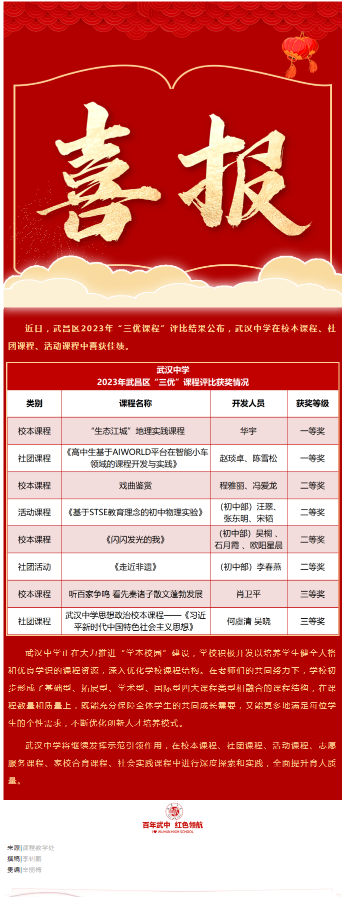 喜报|我校在2023年武昌区“三优课程”评比中荣获优异成绩